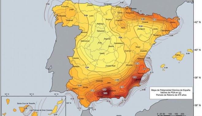 En los últimos 1000 años, v han ocurrido por lo menos 27 terremotos muy fuertes; dígase con una intensidad igual o superior a VII en la escala Mercalli. “Eso permite establecer que las probabilidades que ocurra un terremoto muy fuerte en la España peninsular para los próximos 50 y 100 años sean del 74% y 92%, respectivamente”, afirma.
