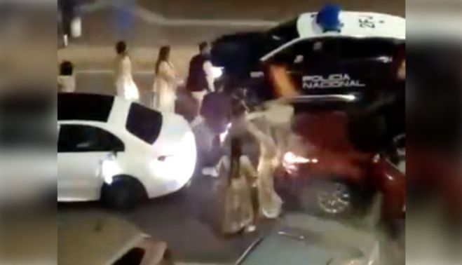 Una fiesta en medio de la carretera, cortando el tráfico, se montaron el pasado fin de semana en Melilla los invitados a una boda.