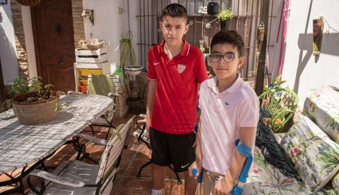 “Cuando da el estirón —y crece— es cuando la enfermedad da la cara”, agrega Inés. Su hijo lleva un mes muy dolorido, sin poder mover la pierna, que la tiene flexionada por el absceso —inflamación— junto a la tibia y el fémur, por lo que toma analgésicos para aliviarse. “Es insoportable el dolor, me dice que tiene muchas ganas de poder estirar la pierna”, dice su madre, que lo cría sola, a él y a su hermano mayor. Ahora está en paro, ya que trabaja sobre todo en la rama agraria. “Mi madre me ayuda, y me han dado un cheque de alimentos, pero no tengo prestación”, dice.