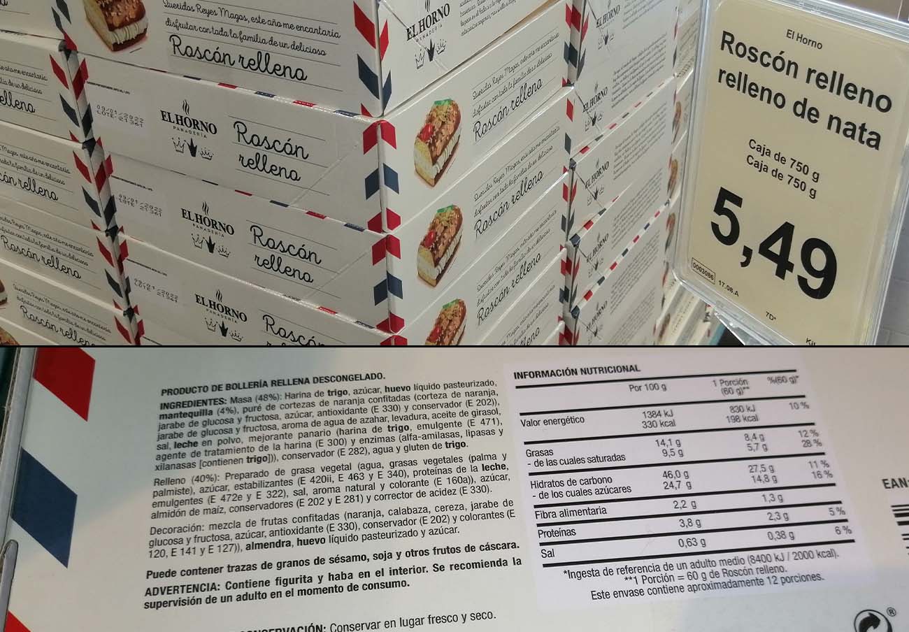 -Comprobar que en la etiqueta aparezca la palabra “nata” como ingrediente único del relleno. Se mostrará como un porcentaje del total del roscón.