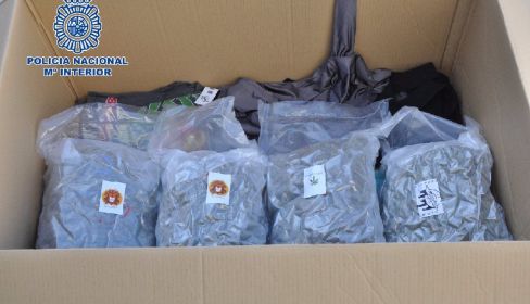 Agentes de la Policía Nacional han interceptado en Vélez-Málaga una furgoneta de mudanza con 24 kilogramos de cogollos de marihuana envasados al vacío. La droga era transportada en unas cajas junto a muebles y otros enseres, por un empleado de una empresa de transporte, que sería ajeno a la trama, según las pesquisas. Los investigadores han detenido, en cambio, a una mujer de origen colombiano que tendría acceso a un trastero localizado en Marbella (Málaga), de donde se cargaría la mercancía.