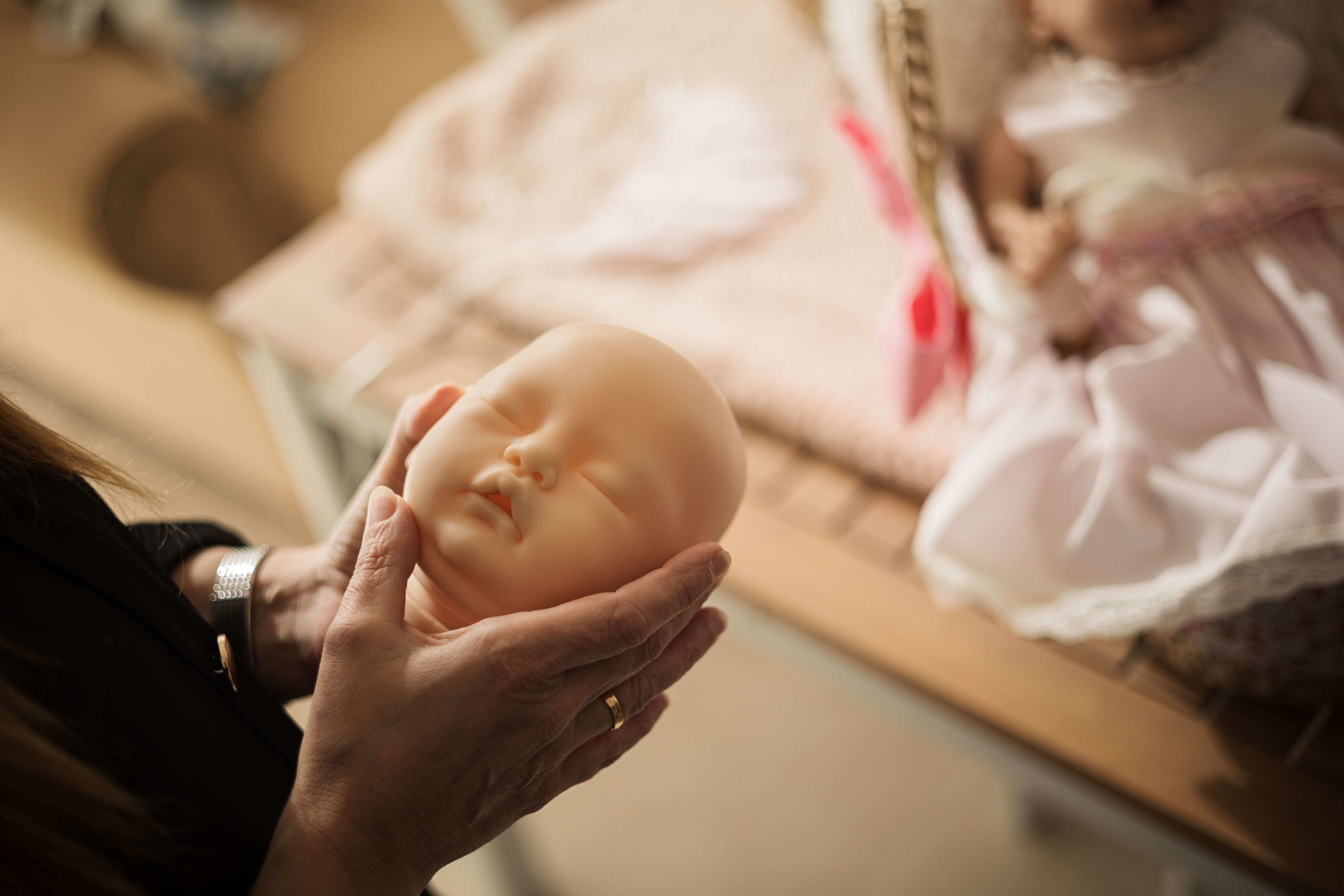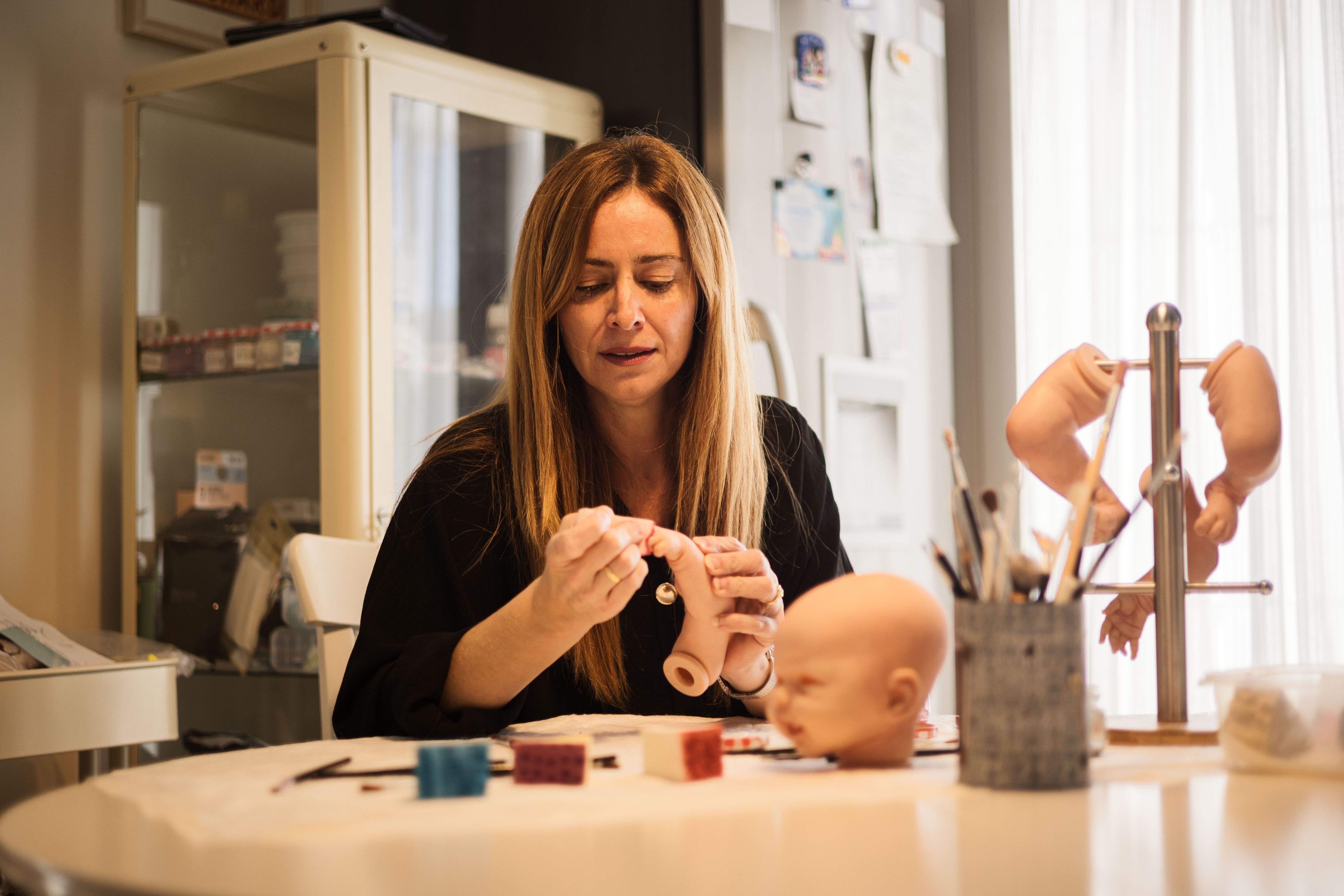 Cristina acaricia el brazo de uno de los bebés con delicadeza. Como si fuera a estallar su llanto si realiza un movimiento brusco. Para ella es “arte” y, cuando adquiere la cabeza y las extremidades, las toma como “un lienzo en blanco donde poder plasmar lo que veo en este bebé, en cada uno veo algo diferente”.