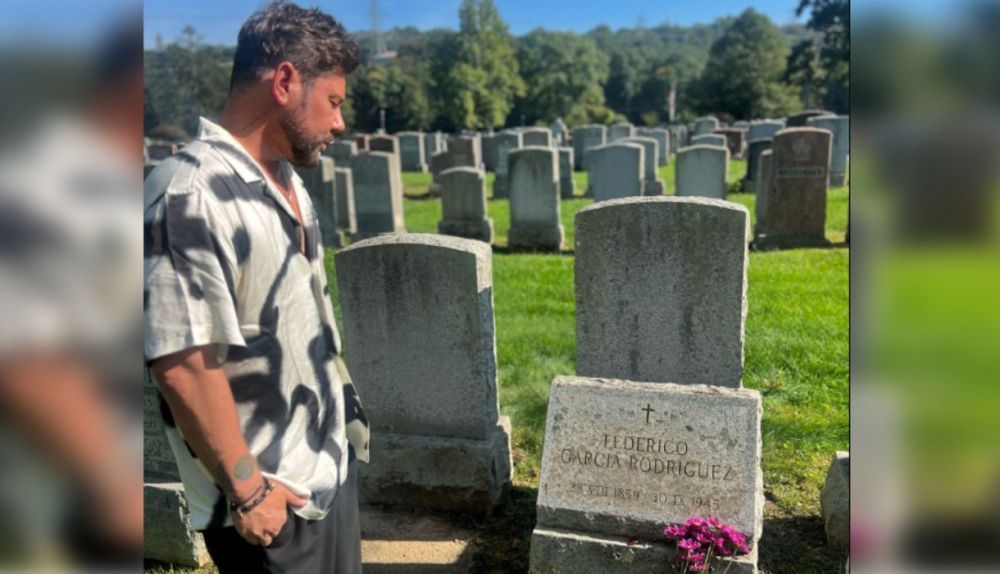 "A miles de kilómetros de su país, moría en Nueva York el padre de Lorca", ha comentado el artista, que tuvo el gesto de "limpiar su tumba para que su nombre pueda leerse con claridad y no sea olvidado".