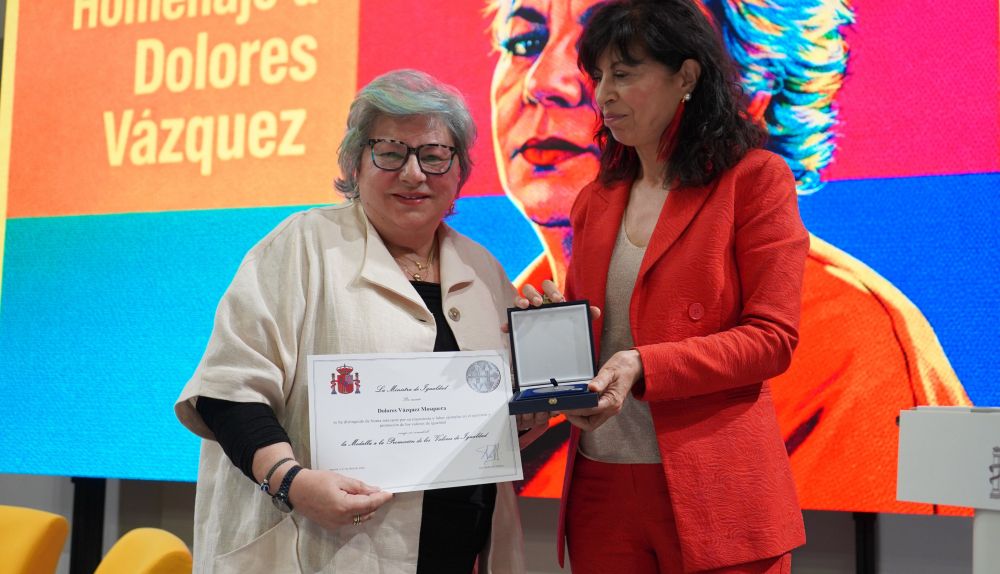 En un auditorio puesto en pie, Dolores Vázquez ha recibido la distinción entre lágrimas de manos de Ana Redondo, quien ha señalado que "es un día de justicia, verdad y reparación", aludiendo a lo que ha descrito como "las mentiras, los bulos, las falsedades y lo perverso de la situación" que tuvo que afrontar.