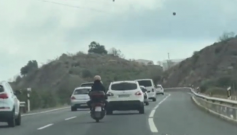 El suceso fue grabado por un vehículo que venía circulaba justo detrás en el que se observa cómo el conductor y su acompañante salen volando por los aires tras el impacto. En las imágenes, que fueron grabadas desde el interior de otro vehículo que circulaba por la misma vía, se ve a la motocicleta cambiando de carril constantemente antes del choque.