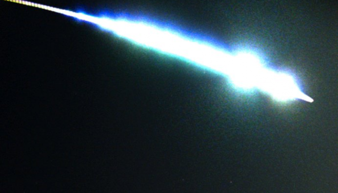 La roca entró en la atmósfera, sobre las 22.25 horas del miércoles, a unos 76.000 kilómetros por hora, y consecuencia de esta enorme velocidad se volvió incandescente generando una bola de fuego que cruzó el cielo nocturno, según explica el investigador del Instituto de Astrofísica de Andalucía José María Madiedo.