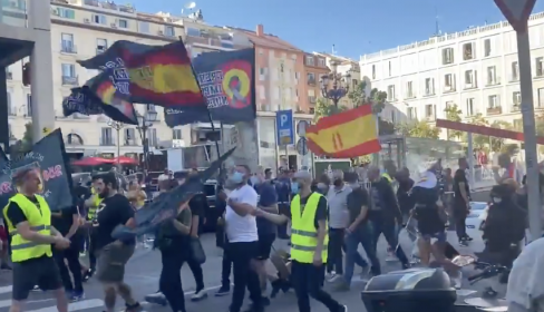 Un grupo de neonazis se ha manifestado este sábado por la tarde en el madrileño barrio de Chueca gritando "fuera maricas de nuestros barrios" y "fuera sidosos de Madrid" escoltados por la Policía Nacional.