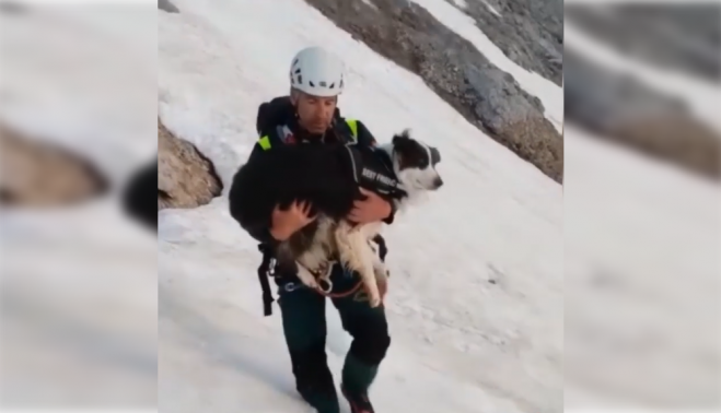 Los agentes comenzaron a buscar el perro con equipo de escalada entre la nieve y encontró al pequeño Logan acurrucado y muerto de miedo. Lo subieron a su espalda para que no se volviese a escapar y comenzaron a descender la montaña.
