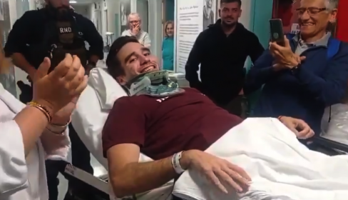 Ha recibido el alta hospitalaria y esta es la emotiva despedida de los sanitarios del @HospitalUVRocio.
