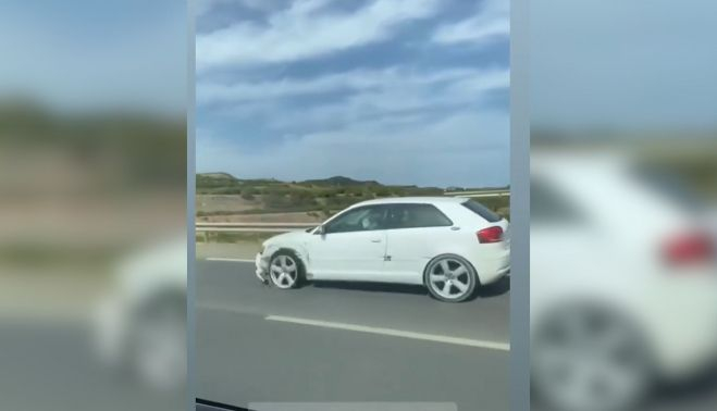 Los agentes interceptaron el turismo en la autovía A-7, a la altura del punto kilométrico 246, cuando circulaba a una velocidad entorno a los 70-80 kilómetros por hora, con los airbags activados y sin el neumático delantero izquierdo.