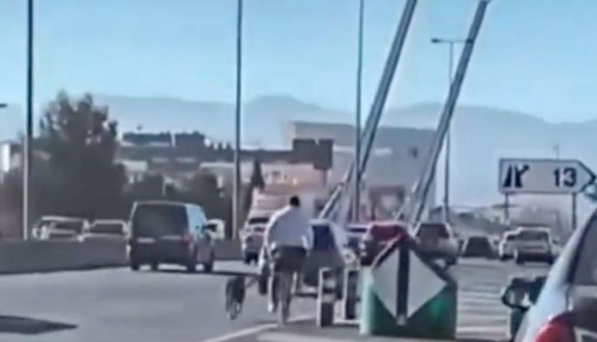 A este hecho le ha añadido un extra de peligrosidad y riesgo, tanto para el hombre como para el animal y para el resto de conductores que pasaban muy cerca de ambos. Y es que al individuo en cuestión no se le ha ocurrido otra que caminar en bici, muy tranquilamente y agarrando de la cuerda de su perro, por la autovía GR-30 de Granada en dirección Motril.