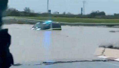 Una de las imágenes, compartidas por la red Social Drive, que ha dejado Juan ha sido la de un furgón de la Guardia Civil que ha sido prácticamente tragado por el agua en Montijo (Badajoz). Los agentes se quedaron atrapados debido a las inundaciones.