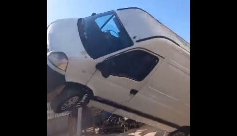 Tras encontrar a una furgoneta en una zona de acceso privado, un trabajador ha cogido una excavadora y tras levantar el vehículo, lo ha lanzado desde arriba, dejándolo volcado.