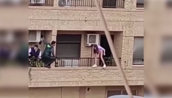 Finalmente, el agente saltó de un balcón a otro al ver que la chica se balanceaba. Su rápida actuación ha sido clave para evitar la caída. Tras agarrar el cuerpo de la joven, la cogió en brazos e introdujo hacia el interior de la vivienda.