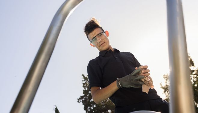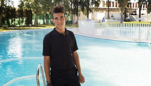 Después de un periodo de tres meses de prácticas, Hamza Bouqaid, un marroquí extutelado por la Junta de Andalucía que tiene 18 años recién cumplidos, ha conseguido el primer contrato de su vida, como personal de mantenimiento en el Club Nazaret durante los meses de verano. Los miércoles se encarga de dejar en perfectas condiciones la piscina, los viernes ayuda en la barra y los sábados está atento a posibles desperfectos que surjan.