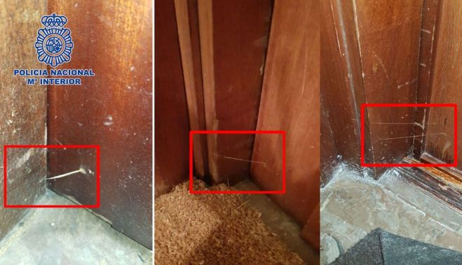 El Cuerpo Nacional de Policía alerta así de este método, realizado con silicona o pegamento, que colocan en la puerta de las viviendas para saber si entra alguien en un periodo determinado de tiempo. Si el hilo, que es similar a una tela de araña cuando se seca, se rompe, significa que ha entrado gente, por lo tanto suspenden el plan de robo.