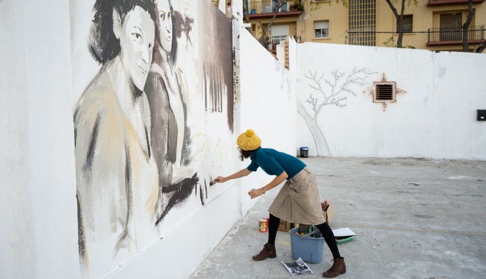 En el muro del aparcamiento de la avenida de la Bajamar se llevarán a cabo cuatro intervenciones artísticas, y esta primera estará dedicada a las portuenses trabajadoras. A través de imágenes antiguas, artistas como Regina Carabayo, Celia Noro o Jesús Espinar —conocido como 'Arte Consciente', recuperan la historia invisibilizada de mujeres de El Puerto que levantaron la localidad a golpe de sueldos precarios y sexistas.