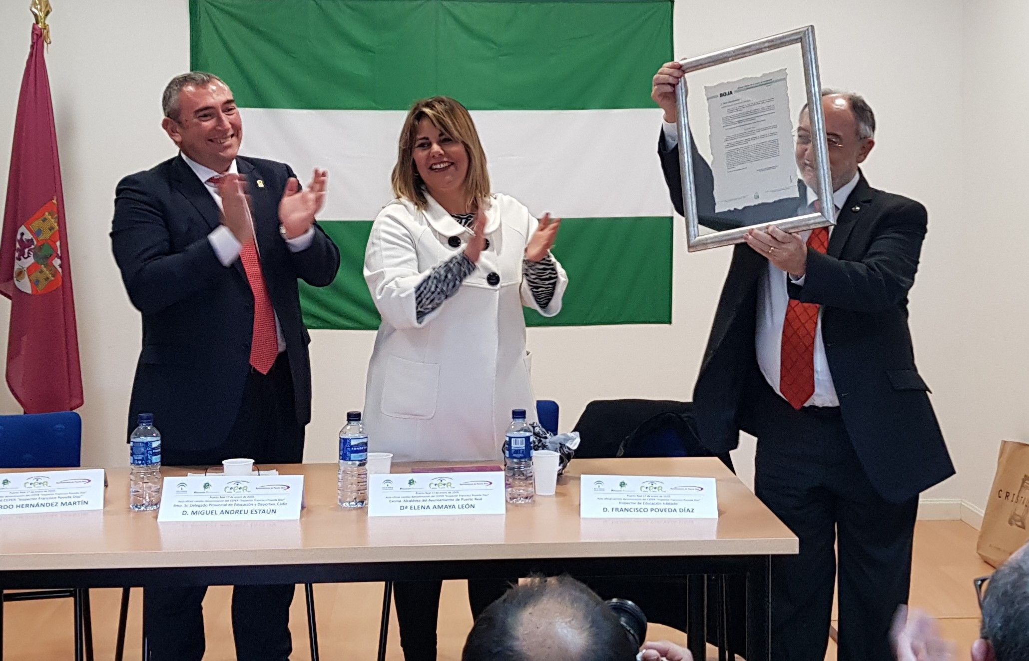 Tras la entrega a Francisco Poveda del BOJA enmarcado en el que se encuentra reflejado el cambio de nombre del CEPER al suyo propio, el encuentro ha finalizado con las palabras de la alcaldesa, quien ha manifestado que “estos actos son los que realmente dan felicidad”. “Paco, has hablado en tu discurso de grandes personalidades de la Historia, y precisamente para Puerto Real es un honor tener aquí a una de ellas, y que un centro de nuestro municipio lleve tu nombre”, ha concluido.