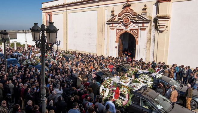 Hondo dolor en Las Cabezas de San Juan, en Sevilla, por la muerte de Manuel, Miguel José Manuel, Juan y Antonio Jesús, trabajadores de entre 19 y 49 años, cuatro de ellos con hijos, que fallecieron un día antes, a una hora de llegar a casa, después de que casi con toda probabilidad un camión invadiese el carril por el que circulaban con el vehículo que les traía de regreso del tajo. Este viernes, a las once de la mañana, ha tenido lugar el entierro de estos cinco trabajadores fallecidos a primera hora de este pasado jueves en un aparatoso accidente en la carretera que une Arahal y Utrera.