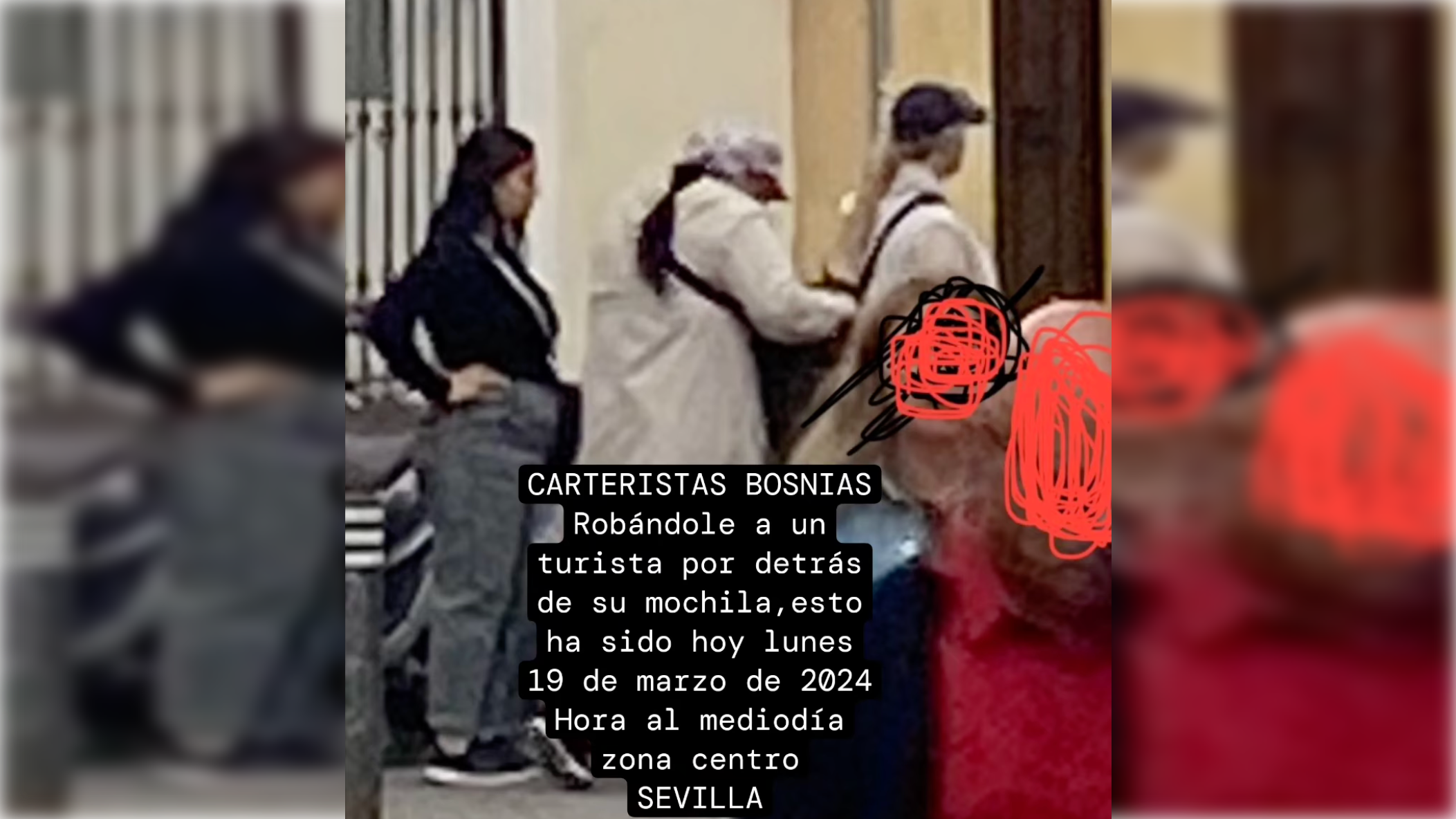 "Carteristas robándole a un turista por detrás de su mochila" o "este delincuente roba todos los días: móviles, bolsos, carteras, por el centro de Sevilla. Si alguien lo ve, que lo denuncie a la Policía de Sevilla", son algunas de sus publicaciones.