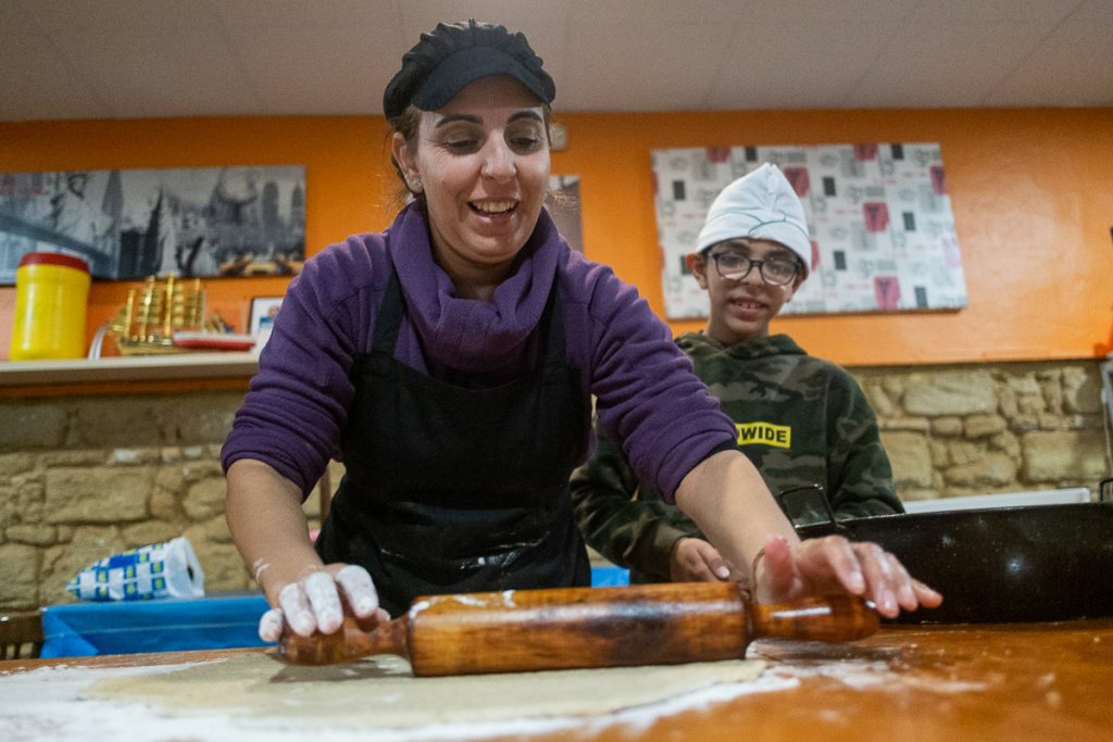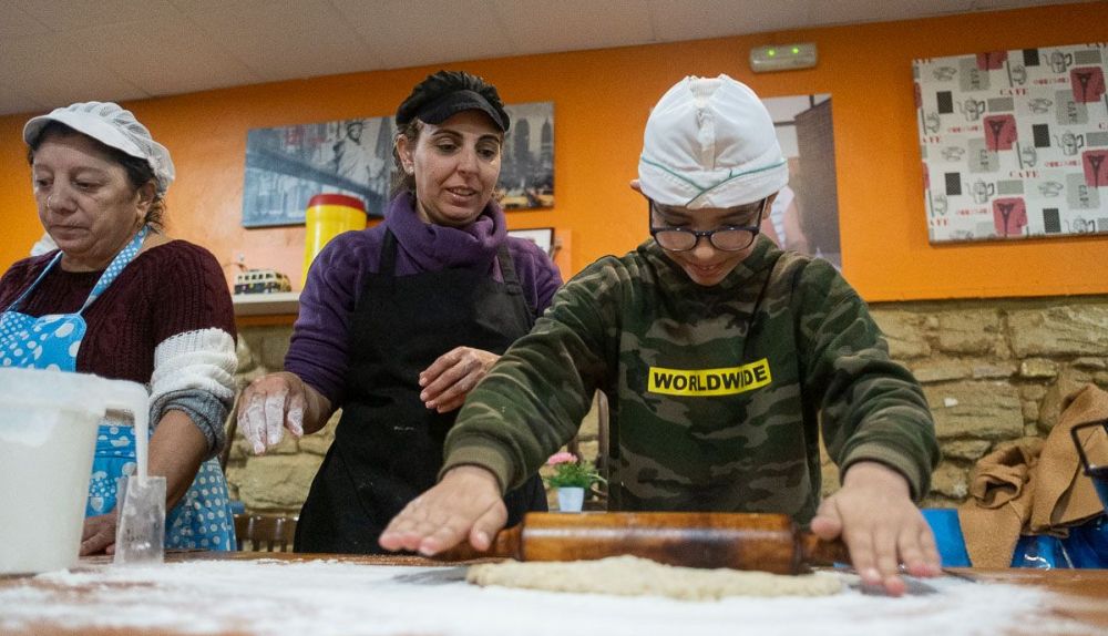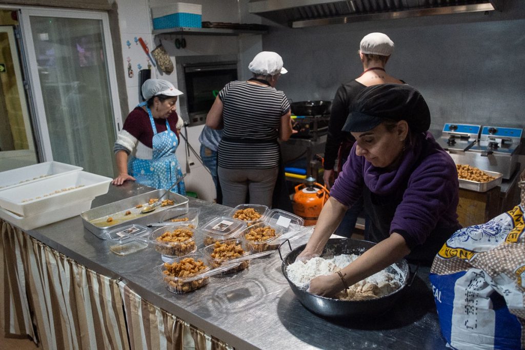 Las voluntarias del comedor Nos importa Jerez ayudan a Inés a hacer pestiños. FOTO: MANU GARCÍA