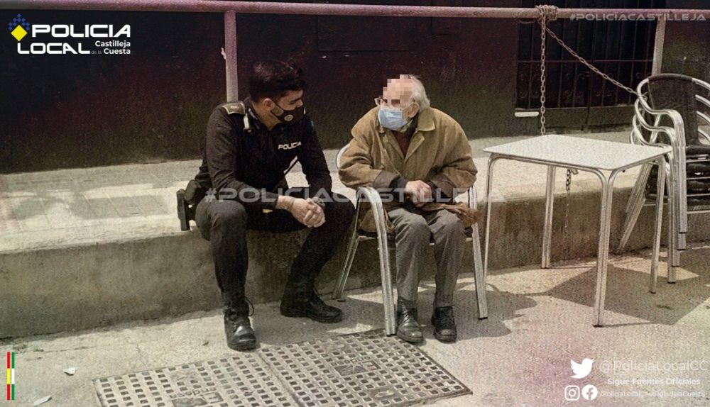 La Policía Local de la localidad sevillana recibió un aviso alertando de la presencia de un hombre mayor que estaba desorientado en un bar. Después de sentarlo en una silla, uno de los agentes estuvo hablando con él hasta que apareció su familia.