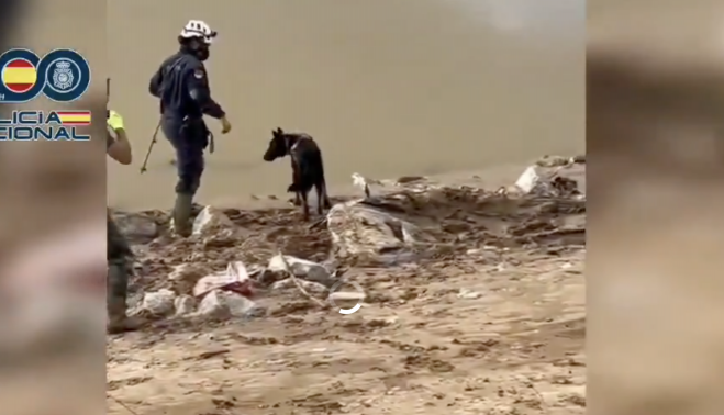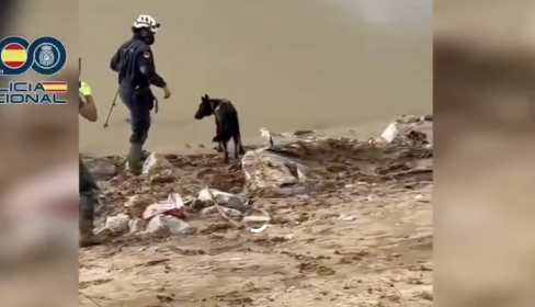 La Policía Nacional ha dado a conocer la labor de Darwin, agente canino especializado en Búsqueda, Localización y Recuperación de Restos Humanos, que continúa sus labores en las inmediaciones del río Turia.