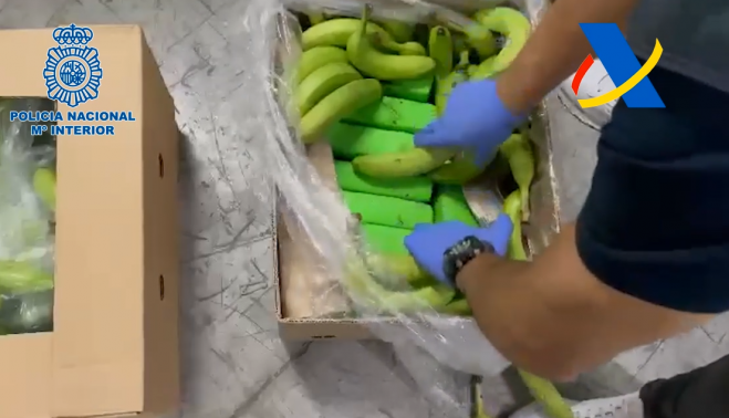 Meses más tarde, nuevamente a través de los canales de cooperación y colaboración internacional, la Policía Nacional de Colombia, bajo la dirección de la Fiscalía General de ese país, remitió, a través de las autoridades colombianas y la Fiscalía Especial Antidroga del Campo de Gibraltar, información sobre la llegada al puerto de Algeciras de dos contenedores sospechosos de ocultar una importante cantidad de cocaína entre la mercancía legal de plátanos declarada.