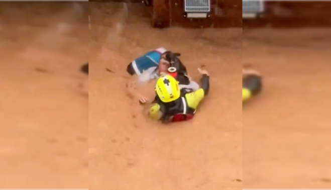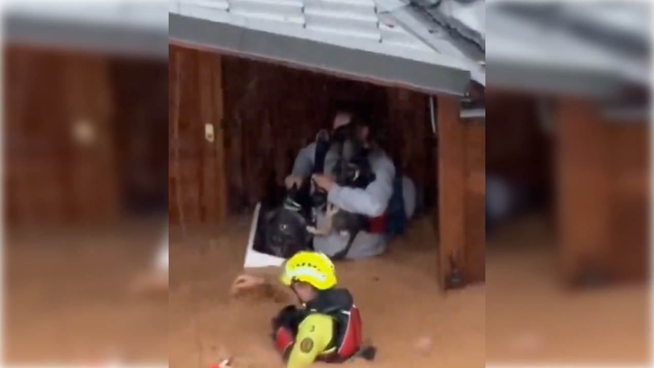 Entre coches amontonados, riadas en pueblos y barrios, y el desbordamiento de ríos que hasta este momento estaban prácticamente secos, hay imágenes esperanzadoras como la de una mujer con su perro y sus dos gatos, en un transportín improvisado con un trozo de corcho sintético a modo de flotador, que ha podido rescatar a sus mascotas gracias a la inestimable labor de los servicios de emergencia.