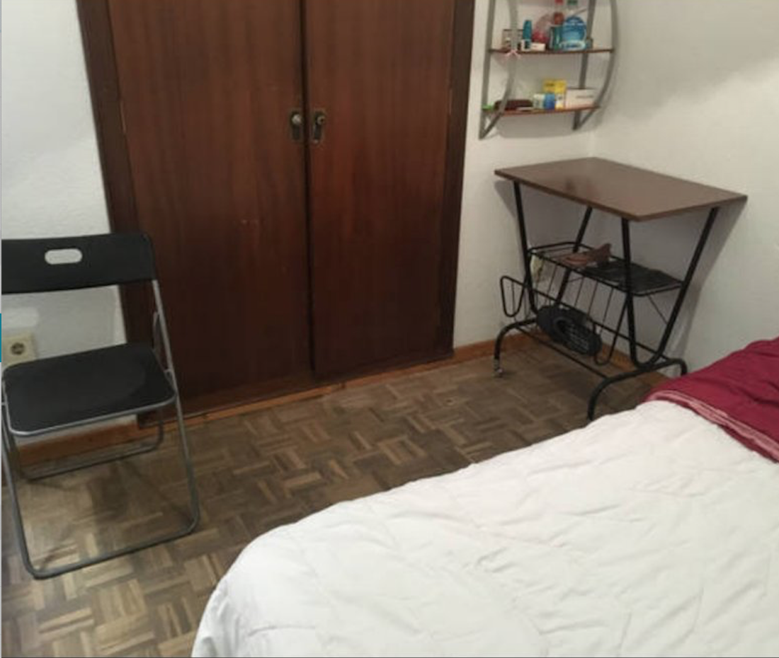 La usuaria de Twitter @makkabra23 ha compartido capturas en la que se puede ver las dimensiones de la habitación, donde cabe una cama de 90, una mesita de noche y el armario empotrado. La posibilidad de una mesa de trabajo era inviable.