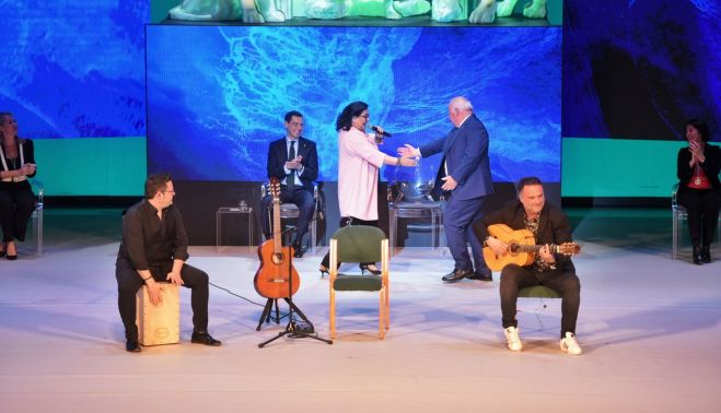 Encima del escenario, la cantante y el político se han puesto a bailar. Al finalizar la actuación, la presentadora Eva González ha comentado con María el momento: "Qué cosa más grande mi María. Te voy a decir una cosa, poner a bailar sevillanas al presidente del Parlamento en la gala institucional de la entrega de medallas", ha señalado Eva entre risas.