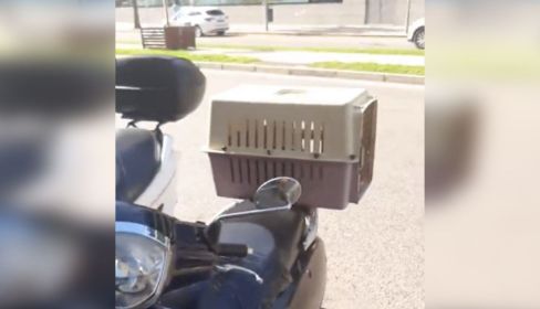 Un gaditano ha agudizado el ingenio y se ha inventado otra forma de guardar este accesorio necesario para la seguridad. Su casco lo guarda en un transportín para animales domésticos.