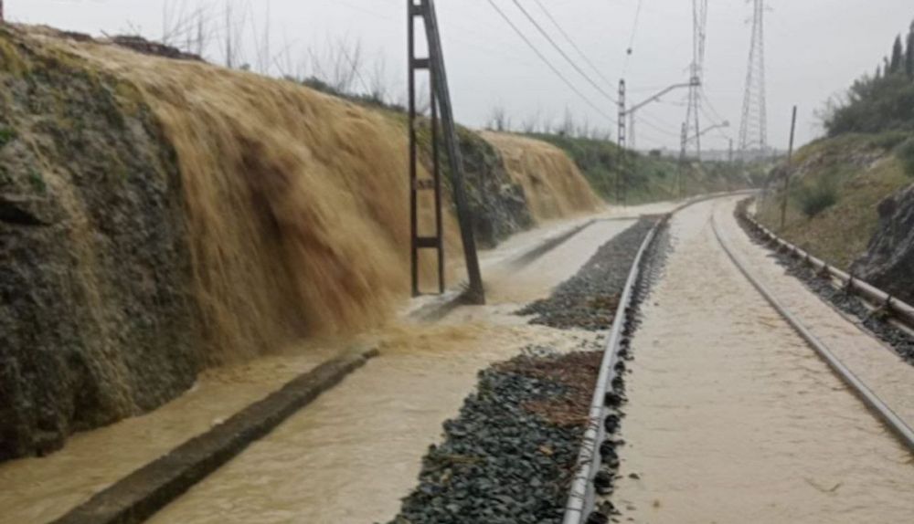 La acumulación de agua ha causado que la circulación de la línea sea imposible por el punto kilométrico 93/900. Según ha comunicado el Administrador de Infraestructuras Ferroviarias, Adif, se ha establecido un plan alternativo de transporte con transbordos por carretera para los viajeros y viajeras afectados.