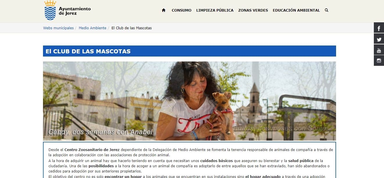 La página web El Club de las Mascotas está albergada en la portada de la página web de Medio Ambiente. Se trata de una página que se pone en marcha con los recursos propios del Ayuntamiento, de Comunicación y el Centro Zoosanitario.