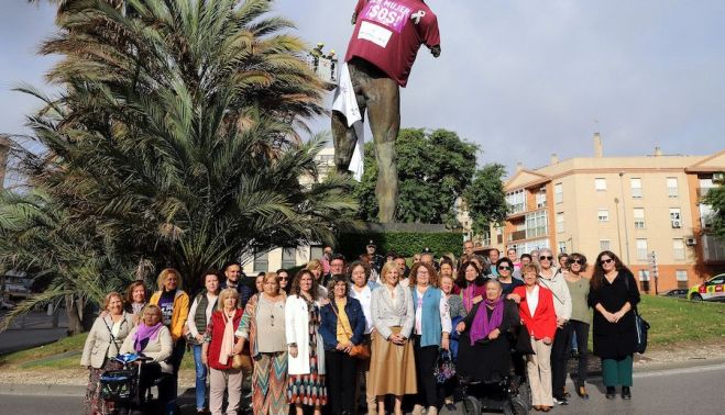 Al acto de inauguración del outfit de la escultura erigida por el artista Víctor Ochoa, acuden miembros del gobierno local del PP, y también de la oposición, concretamente concejales del PSOE y de La Confluencia —que integran IU y Ganemos—, pero no de Vox, que este mandato por primera vez tiene representación en el pleno, y que se desmarca del primer acto oficial contra la violencia de género.