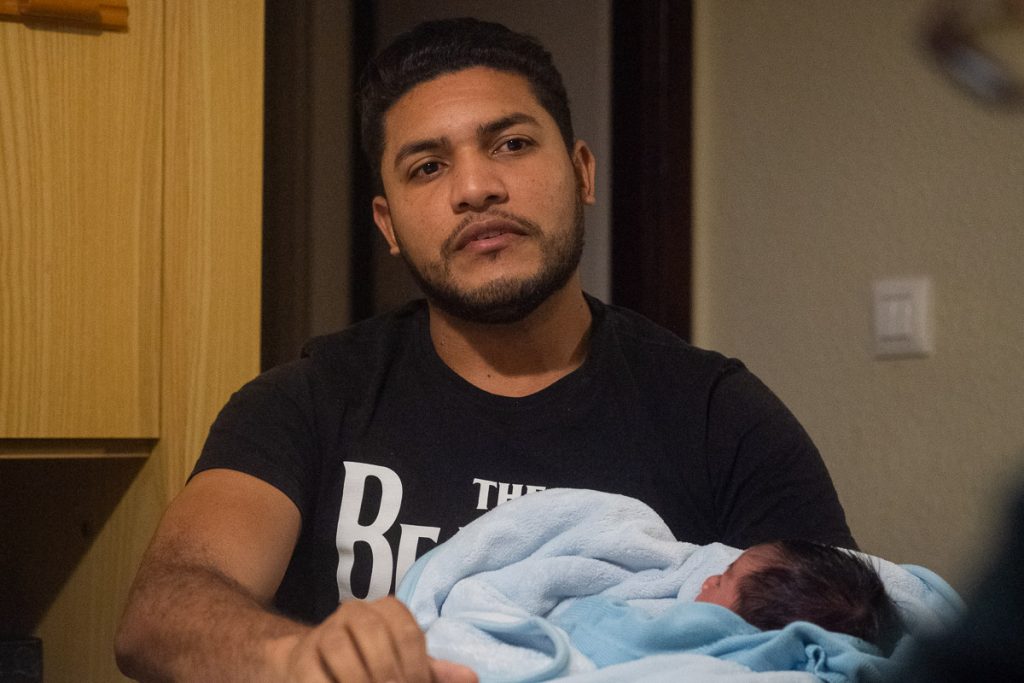 Joanna estaba embarazada de cinco meses cuando se montó en un avión sola, en Brasil, con destino a España, en busca de una mejor vida para sus hijos, el mayor y el que estaba en camino. “No teníamos dinero para los pasajes de los tres y decidimos que yo viajaría primero”, cuenta. Unos 1.500 euros les costó el billete, una cantidad para la que estuvieron trabajando en el país carioca, ya que en Venezuela “el dinero no alcanza más que para comer”, cuenta. “No quería tener el bebé allí, está todo tan colapsado que muchas mujeres paren en pasillos de los hospitales”, señala Joanna, mientras Jony sostiene en brazos al pequeño de la familia, nacido el 6 de diciembre.