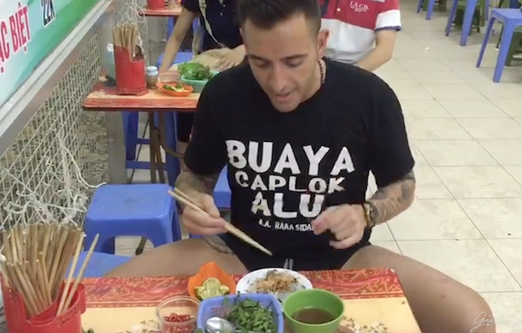 Durante su periplo por Argentina, cocinó sopa majada junto a una cocinera nativa; en Vietnam hizo una sopa de fideos, probó el pato vietnamita, el pequinés o el balut —un huevo de pato fertilizado con su embrión dentro que se cuece igual que un huevo cocido—; en Camboya alucinó con el picante o la cúrcuma; en Laos probó el búfalo de agua; en Paraguay comió y cocinó puré de mandioca; en Bolivia se deleitó con el caldo de cardán, elaborado con pene de toro y papas andinas; y en Marruecos se quedó prendado de los crepes hojaldrados o el mechui —cordero asado a la brasa—, por poner algunos ejemplos.