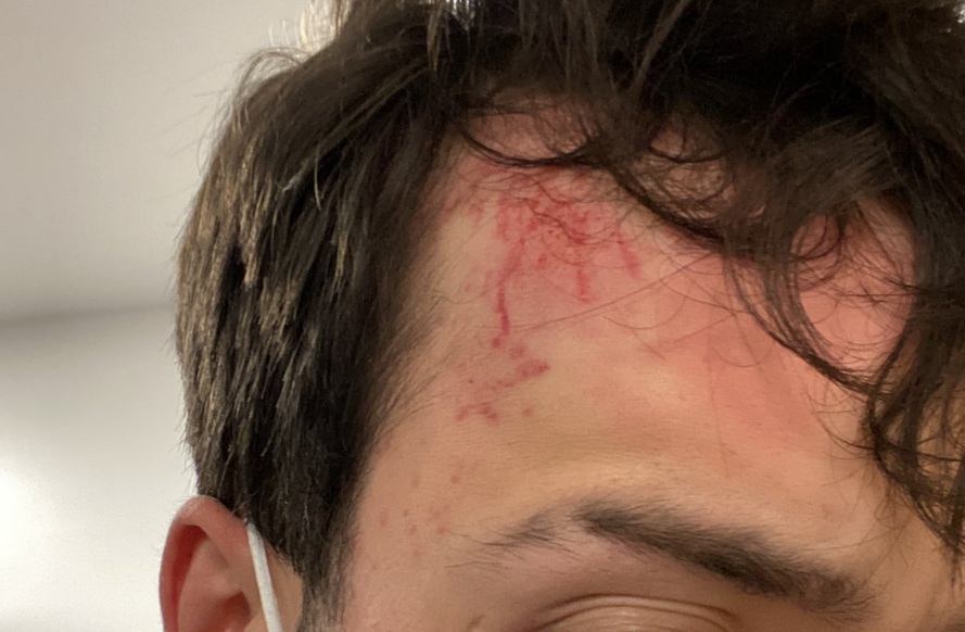 “Solo recuerdo levantarme dolorido, sangrando, llorando y con todas mis pertenencias al rededor, iphone, Apple Watch, cartera con tarjetas, tabaco, todo, no me habían robado nada. La paliza había sido por el gusto de pegar a un maricón”, relata el joven. Asimismo, deja una foto de cómo acabo detrás de la paliza. Su compañero de piso bajó a socorrerle, pero los agresores ya habían huido. Después de eso se dirigieron al hospital a curarle las heridas.