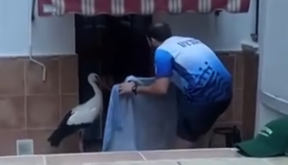 Explica con todo el arte que el "gitanito runner venía de hacer seis kilómetros" y después se le ve en la labor de la captura de la cigüeña con toda la tranquilidad del mundo hablándole de esta manera: "Yo te quiero ayudar. Yo estoy cagado, pero tú no te preocupes. Te voy a echar la mantita y te voy a llevar al colegio. Te voy a intentar ayudar".