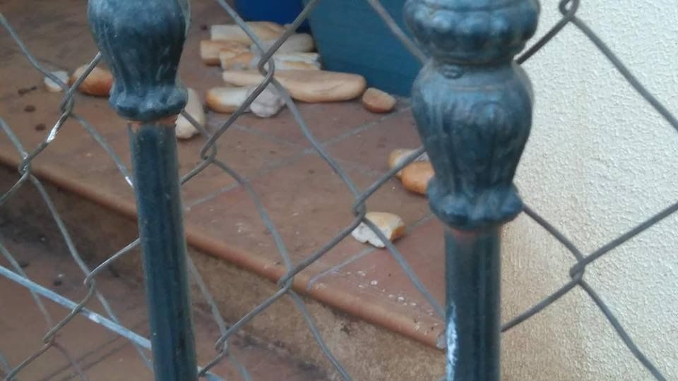 Trozos de pan duro en el patio de la unifamiliar jerezana en la que residía Yaco.