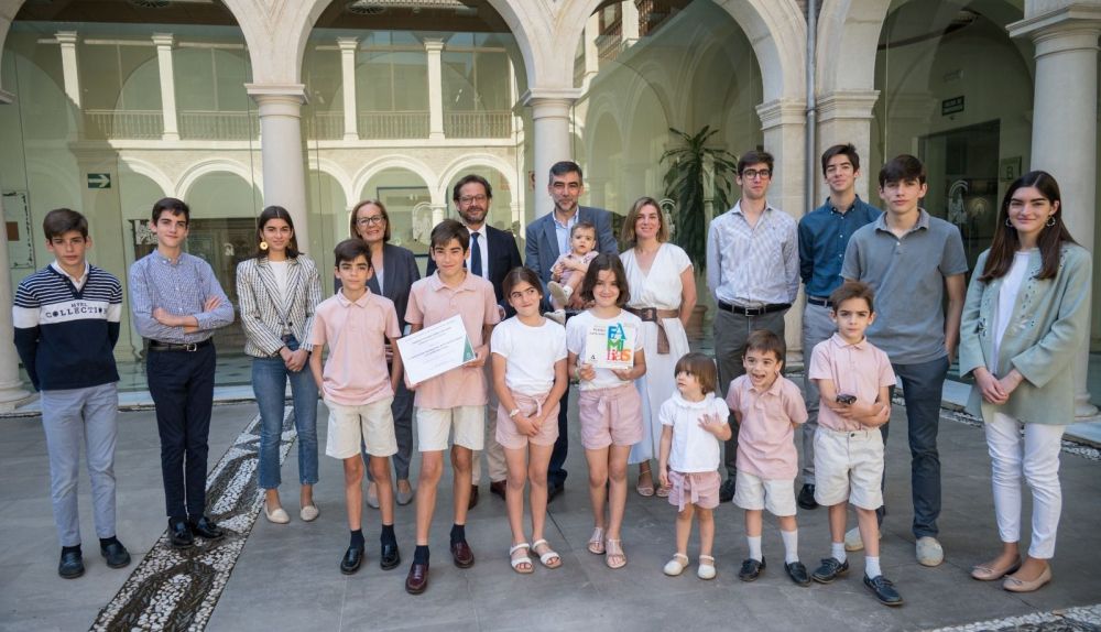 En concreto la de 'familia numerosa'. Esta vez, dicho premio ha ido a parar a una familia de Granada formada por un padre, una madre y quince hijos. Los 'Cuevas Benítez' fueron reconocidos por ser capaces de "sortear dificultades, imprevistos, problemas y día a día se afana en el objetivo de la crianza de sus hijos e hijas en el convencimiento de que está contribuyendo de la mejor manera posible al aumento demográfico y relevo generacional".