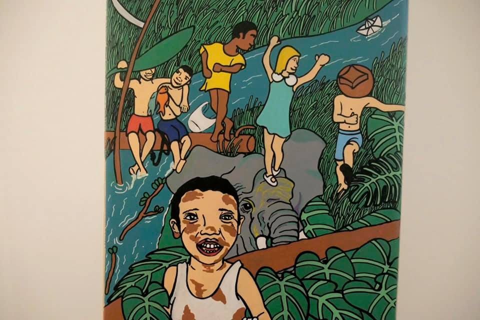 Detalle de la ilustración en la que María muestra la problemática de los niños soldado. FOTO: José Antonio Pliego Gil