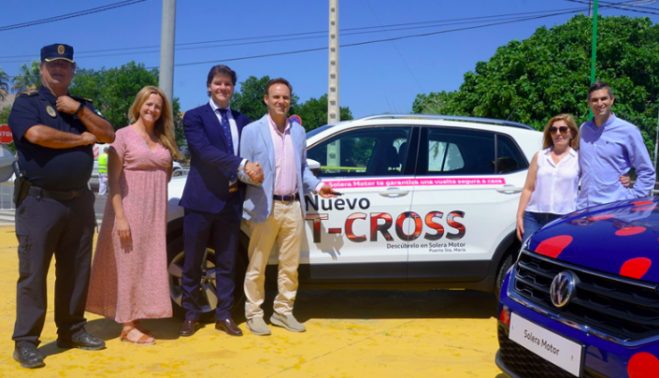 La nueva campaña de la Policía Local Vuelta segura a casa, en el recinto ferial de Las Banderas, una iniciativa en la que ha colaborado el grupo Solera Motor facilitando un vehículo T-Cross bajo el eslogan Solera Motor te garantiza una vuelta segura a casa, para que cualquier mujer que sufra una amenaza de riesgo o violencia sean acompañadas a sus domicilios por la Policía Local.