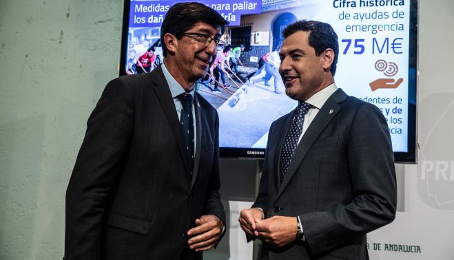 El presidente de la Junta de Andalucía, Juanma Moreno, ha informado tras la celebración del Consejo de Gobierno de la aprobación del mayor paquete de ayudas de emergencia consignado hasta la fecha tras sufrir los efectos de una catástrofe. "Ponemos sobre la mesa 75 millones de euros para afrontar las actuaciones de emergencia derivadas de la gota fría. Se trata de una actuación extraordinaria para paliar los efectos de un fenómeno extraordinario", ha señalado. Así, ha recordado que esta cantidad casi dobla la que en 2018 se destinó como ayudas de emergencia tras las inundaciones con peores efectos hasta entonces (37,7 millones de euros).