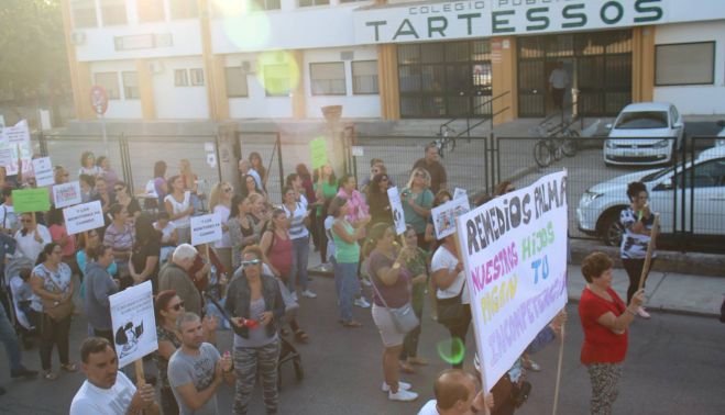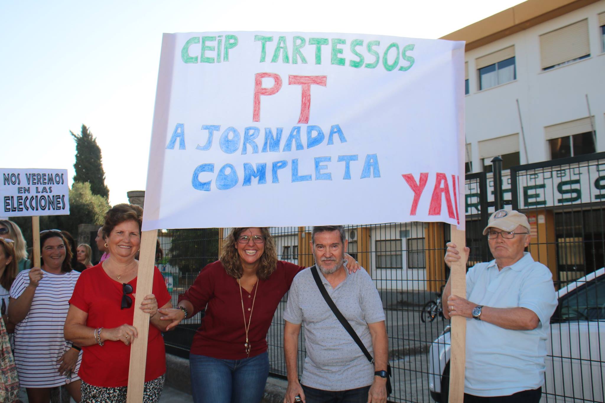 Las familias del alumnado del CEIP Tartessos (Jerez) se han manifestado frente a las puertas del colegio para exigir la incorporacion de un profesor de Pedagogía Terapeutica (PT) a tiempo completo, ya que en el centro trabajan docentes compartidos con otros colegios.