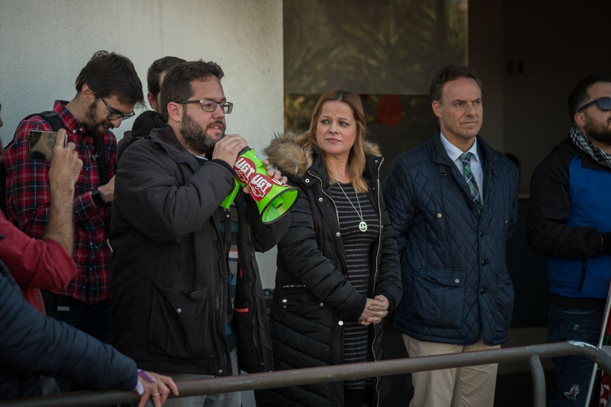 David de la Encina, alcalde de El Puerto, en un momento de la concentración a las puertas de Konecta. FOTO: MANU GARCÍA.
