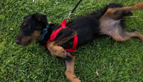 Actualmente esta joven perra de raza Jagdterrier, "se encuentra recuperada por completo, física y psicológicamente, es feliz y está completamente integrada en su casa de acogida, con la que lleva cerca de dos años".