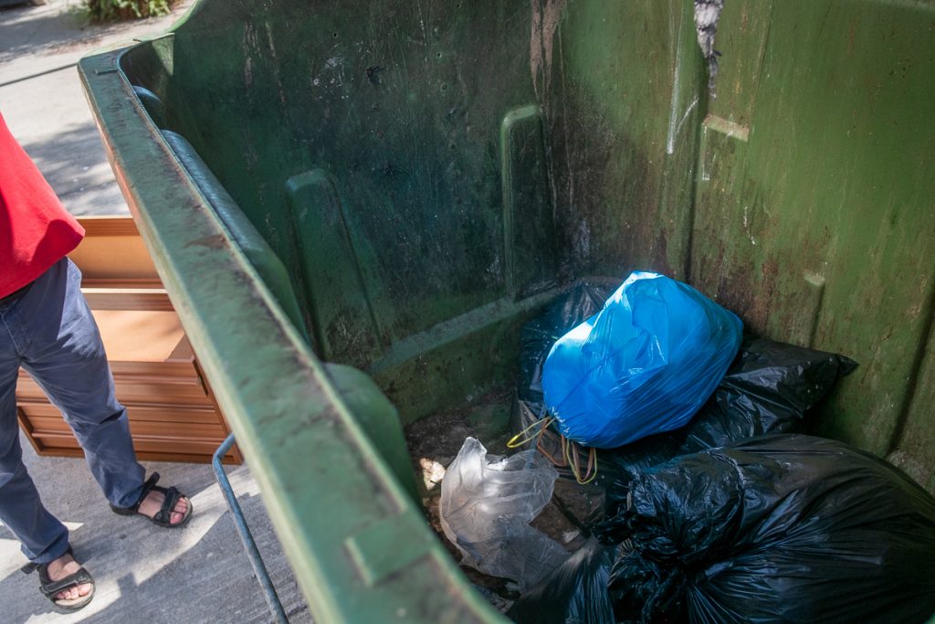 El presidente de la asociación vecinal La Marquesa lo corrobora y abre uno de los contenedores verdes, donde muestra bolsas del centro, en la que dice que hay desde pañales a basuras del diario de la clínica. "¿Un centro como este no puede tener su propia recogida de basuras?", se pregunta el secretario. El vecino, que sigue desde su casa la escena, tiene claro de que el procedimiento no es el correcto: "Esos contenedores deben estar dentro del centro, o que tengan los suyos propios pero que dejen de molestar a los vecinos", concluye.