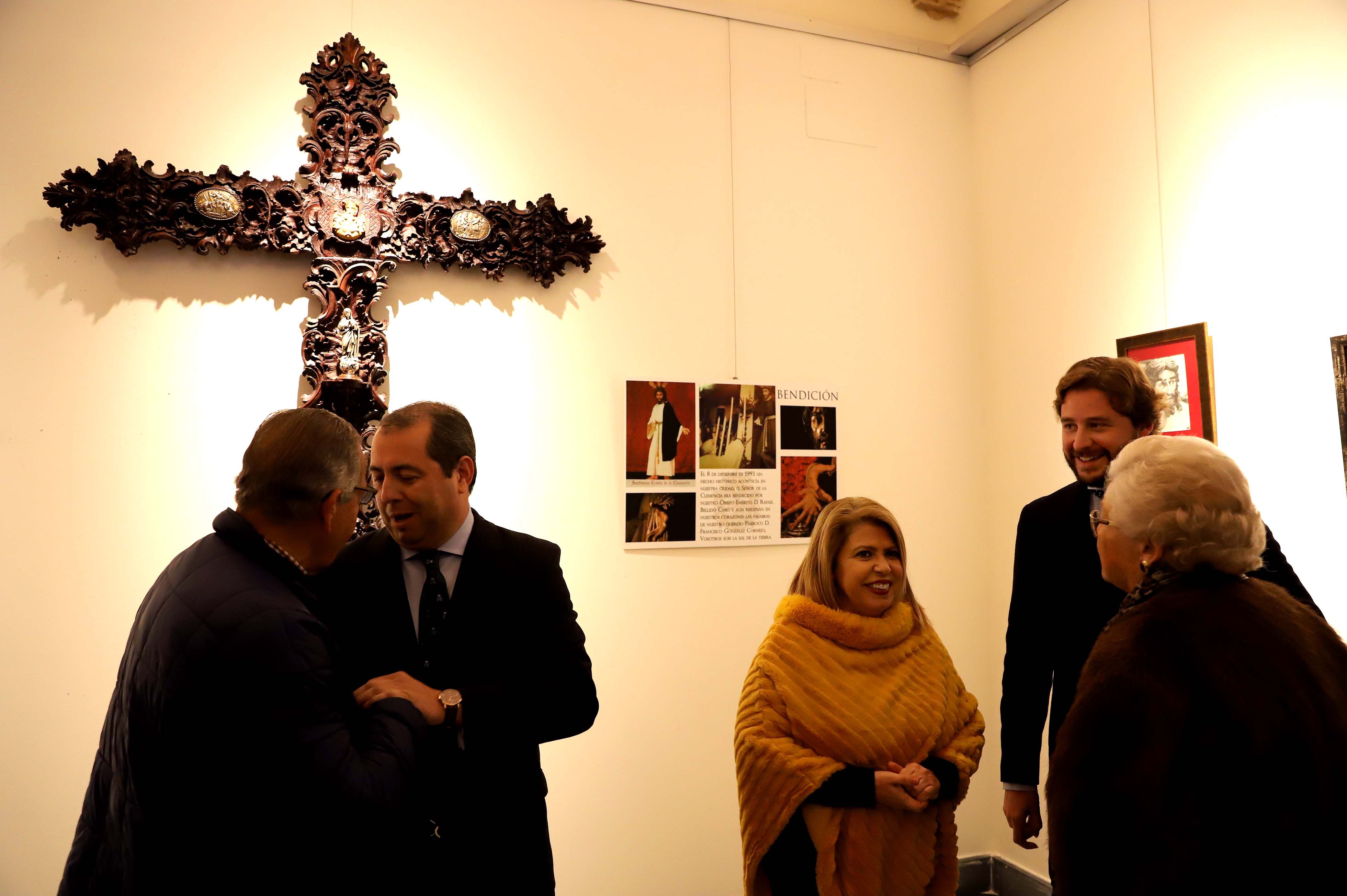 La Sala Profundis de los Claustros acogerá hasta el próximo 28 de enero la exposición organizada por La Clemencia, que reúne más de 250 piezas artísticas quedando “expuesto y terminado y por primera vez a los ojos de los hermanos el respiradero frontal del paso de palio, cuyo bordador ha sido Pedro Palenciano”, ha explicado el teniente de Hermano Mayor, Damián López-Cepero, que ha presidido la inauguración junto a la alcaldesa, a los citados Ángel Heredia y Dionisio Díaz y a José María Collantes, vicepresidente del Consejo Parroquial de San Benito. La exposición ofrece todo el material histórico, cultural y devocional de la hermandad, además del frontal y el grupo escultórico del paso de misterio y el frontal del paso de palio de la hermandad, con el objetivo de dar a conocer a la ciudadanía su historia.