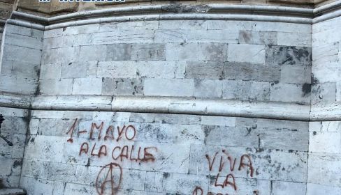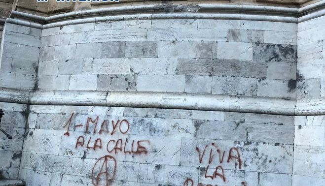 Hasta el lugar se desplazó un indicativo de los Grupos de Atención al Ciudadano cuyos agentes observaron como efectivamente en la zona baja de la Torre de Poniente de la Catedral se habían efectuado unas pintadas. Los agentes se entrevistaron con el requirente, así como varios testigos presenciales que informaron que el presunto autor de las pintadas había abandonado el lugar por la calle San Juan. Otro indicativo policial desplazado hasta la zona localizó al sospechoso en la plaza de la Libertad donde fue interceptado.